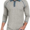 - Men’s raglan polo shirts features with polo collar, 3 button closure, subtle contrast stitching throughout, faux wood buttons, the contrasts will wake up denim and khakis.