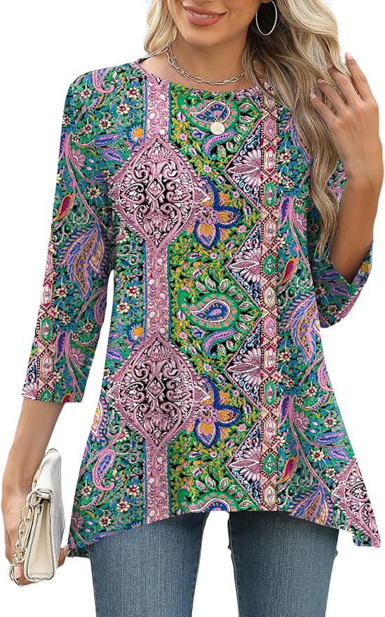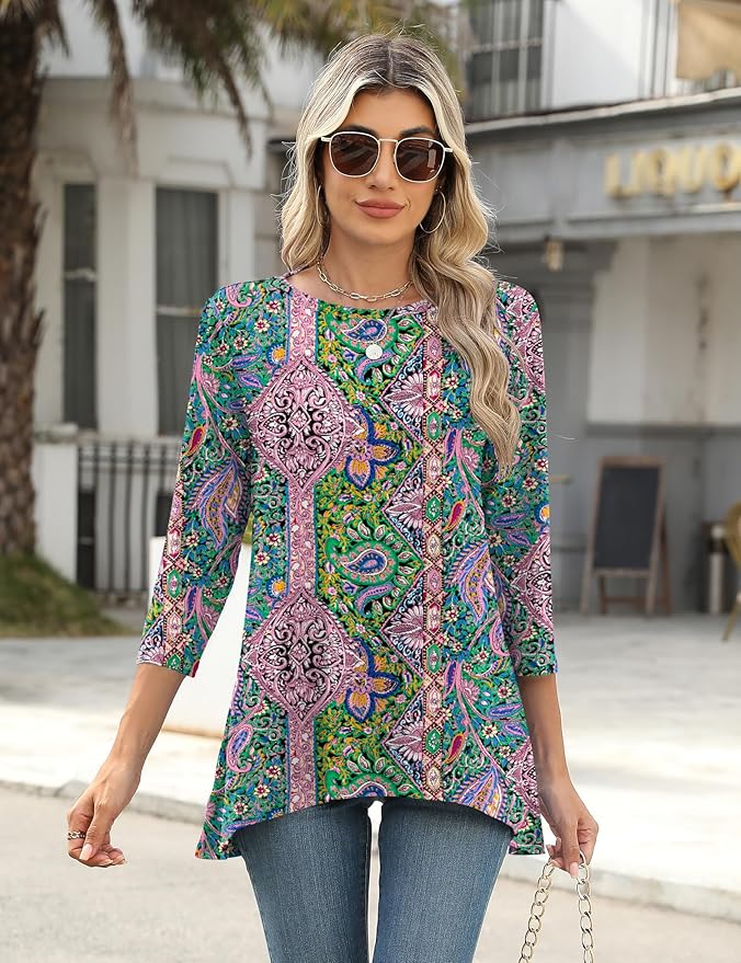 - Soft Tunics – Lomon women’s tunic tops made of 60% polyester 35% rayon and 5% spandex, high quality fabric makes this womens casual tops soft, light weighted,stretchy and breathable. Especially the fashion floral print, They are nice and unique, very suitable for spring and summer.